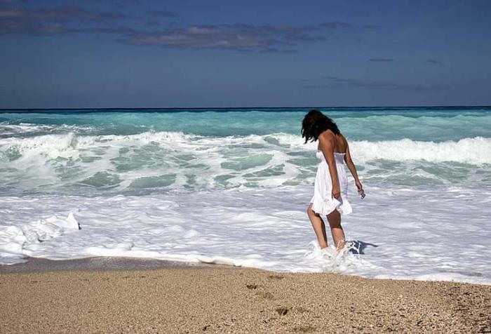 Брегът гали нозете ми с безбройните песъчинки, обгърнати в златист блясък, отдаващ топлината на любовен трепет с всяка моя стъпка.