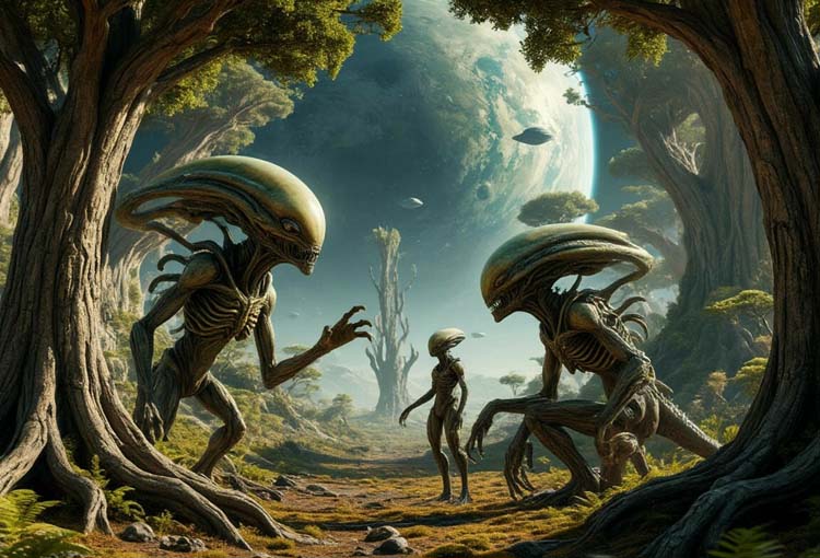 От много цикли, първи лардите, а след това и жители на много други планети, бяха започнали да се вмъкват в мозъците на човеците от планетата, наречена от тях Земя. Лардите бяха намерили много подходящ материал, примати обитаващи третата планета на една звезда, в периферията на галактиката 883/ЗАК/17. Изпратиха биотехници. Те пипнаха тук-там в тяхното ДНК и се беше получил много интересен продукт. За късмет, тази планета имаше и сателит, който те превърнаха в междинна станция.