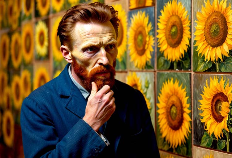 По време на една нощна смяна, когато музеят бе притихнал и картините сякаш дишаха в полумрака, дочух странни шумове от втория етаж, където бяха най-ценните платна от арлския период на Ван Гог. Рашид беше на първия етаж, а аз бях сам горе. Когато стигнах до стълбите, видях двама души с качулки, които се опитваха да откачат „слънчогледитe“ от стената.