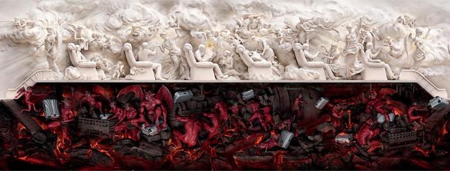 Според Спиноза Бог е тъждествен с Вселената. Тук е основната трудност. Никой не знае колко е голяма Вселената. По тези причини ще се ограничим в рамките на нашата Галактика. Ще приемем (макар и доста грубо), че в нашата Галактика има 100 милиарда звезди, отдалечени средно по на 5 светлинни години една от друга или описаният квадрат ще бъде със страна 500 милиарда светлинни години. В метри това прави 365.24.3600.3.108.5.1011= 4,73.10↑27 m, или площта на “божия” квадрат е 2,24.10↑55 m2. Следователно площта на дяволския квадрат е реципрочната стойност на това число, т.е. 4,46.10↑-54 m2.