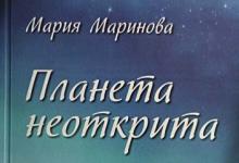 В новата си стихосбирка “Планета неоткрита” поетесата Мария Маринова представя 106 стихотворения, които оформят своеобразна семантична композиционна рамка между “Фитилът на нишката моя житейска пресъхва...” (“Песента на щуреца”) и “Чакай, Дух! Не прекрачвай оттатък...” (“А Животът...)...
